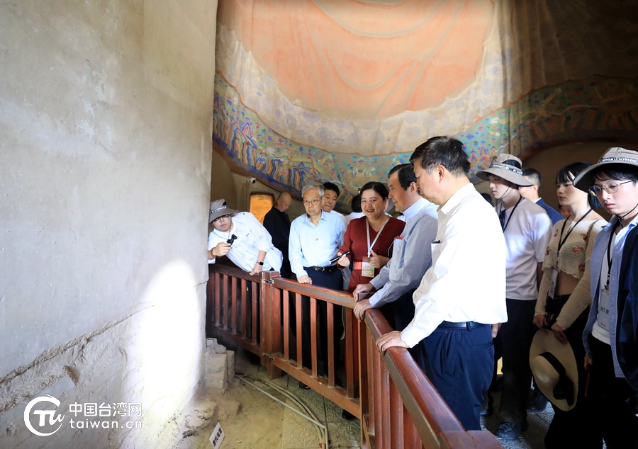 活動前,兩岸嘉賓和青年共同參觀了敦煌莫高窟。(中國臺灣網記者 尹賽楠 攝)