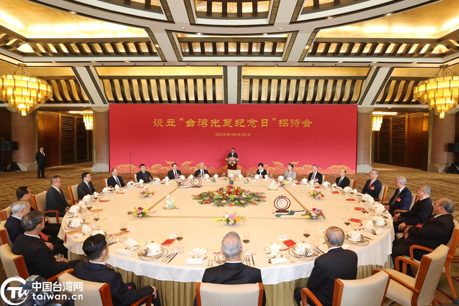 中國臺灣網北京10月25日訊 25日中午,中共中央臺辦、國務院臺辦在釣魚臺國賓館舉辦設立臺灣光復紀念日招待會,參加25日上午紀念臺灣光復80周年大會的臺灣各界嘉賓、大陸有關方面代表人士出席。